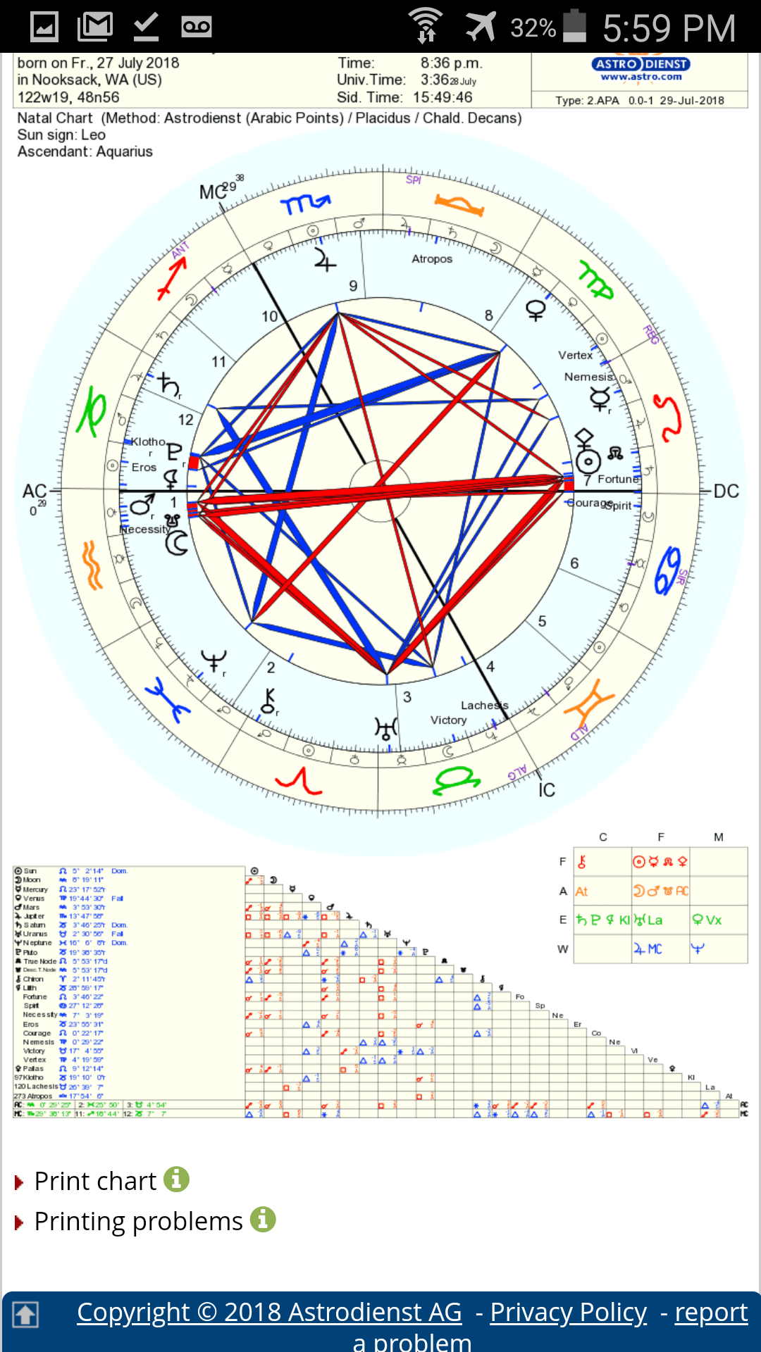 With the Moon in the first house confrontations can arise. There’s a change in location (maybe he has been moved?) And last of all actions of others impact Todd. With Aquarius rising it’s important to select friends with care. This was an unpredictable thing for Todd.
