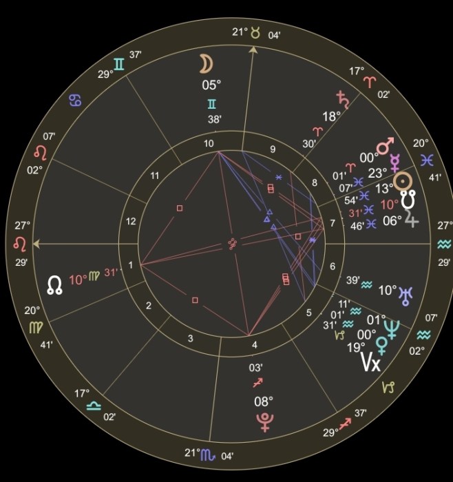 With Mercury, the Moon’s dispositor in 9th house Pisces we may conclude that Rui was taken far off and is in water. The direction of Pisces is North by west. Pisces is associated with water and often someone will be found inside of something or will be contained by something. I have seen two cases in the past where victims in the sign of Pisces were found in their cars submerged in water (rivers to be precise). Again, the 9th house of long-distance travel and long journeys abroad could indicate he was with foreign people who may have been from far off. It could indicate he is far away from where he disappeared.